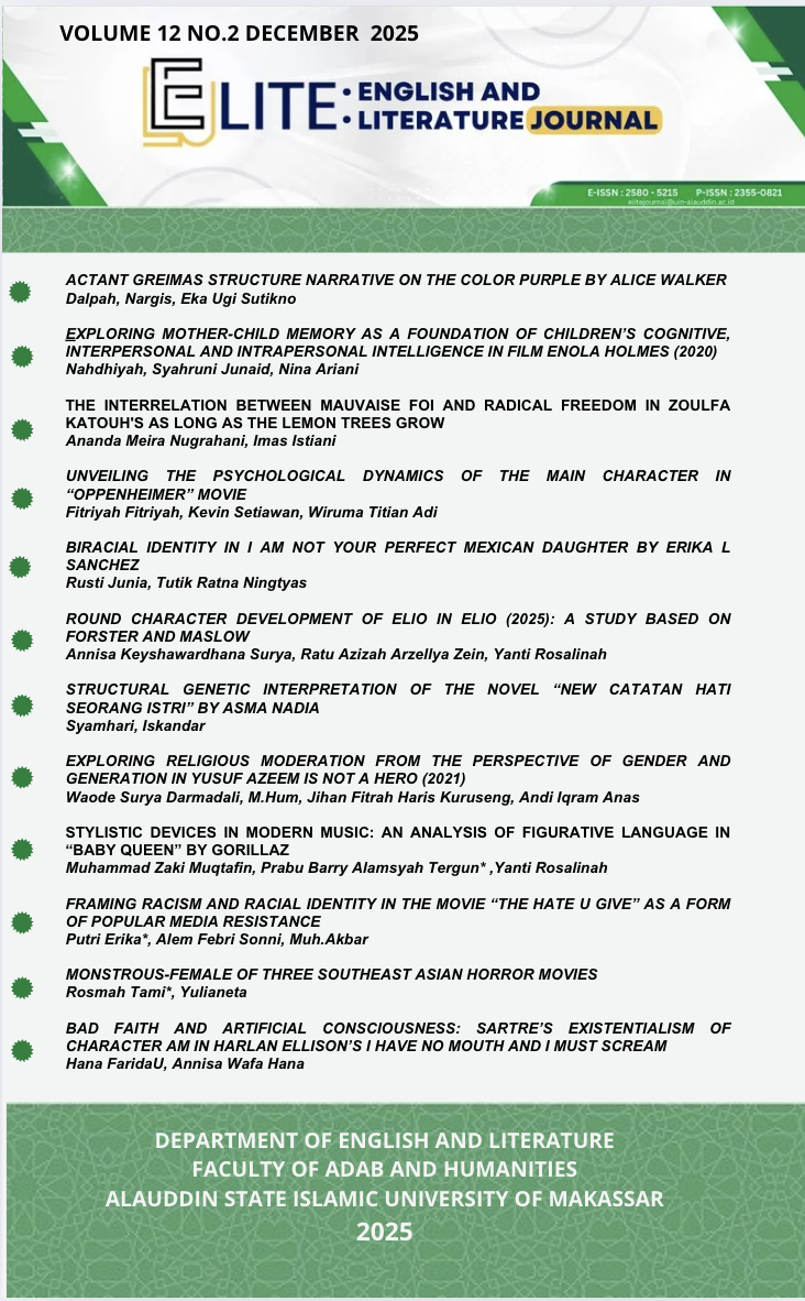 Vol. 9 No. 2 (2022)In this edition, our journal featured a diverse array of 10 articles across multiple disciplines. These included literary analyses such as examinations of "The Yellow Wallpaper" and the archetypal journey in "Hansel and Gretel." Film studies delved into the historical context of the 2019 "Aladdin" adaptation and racial discrimination using Gordon Allport’s theory in "Fruitvale Station." Sociocultural critiques explored themes of gender discrimination in literary works and racial practices in the film "Mississippi Burning." Additionally, we explored children's literature through an analysis of hidden adult themes in Okky Madasari’s "Mata di Tanah Melus," and reception studies examined how students perceive contemporary Shakespearean plays.